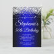 Crie seu próprio na moda fabuloso 50º ou outro convite de celebração de aniversário milestone para ela. A parte superior do convite contém gráficos decorativos, pouco claros, brancos e prateados com brilho. A arte digital de fundo apresenta um brilhante gradiente azul de cobalto e verde preto ombre. Os brilhos, brilhos e brilhos do luxo serão criados por elementos artísticos que impressão gostam de uma foto.