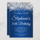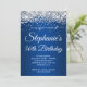 Crie seu próprio convite para comemoração de aniversário do marco do rico para ela. Gráficos cintilantes brancos e prateados com defeito no topo. A arte digital de fundo apresenta um profundo gradiente azul. Personalize as cores ou estilos da fonte do convite. Os brilhos, brilhos e brilho do luxo serão criados por elementos artísticos que impressão gostam de uma foto. Fabuloso convite de 50 anos para seu melhor amigo.