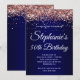 Crie o seu próprio convite para comemoração de aniversário de um marco de na moda para ela. Gráficos brilhantes, brancos esbranquiçados e rosa dourados decorativos no topo. A arte digital de fundo apresenta um gradiente azul escuro marinho. Personalize as cores ou estilos da fonte do convite. Os brilhos, brilhos e brilhos do luxo serão criados por elementos artísticos que impressão gostam de uma foto. Fabuloso convite de 50 anos para seu melhor amigo.