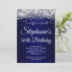 Crie o seu próprio convite para comemoração de aniversário de um marco de na moda para ela. Gráficos cintilantes brancos e prateados com defeito no topo. A arte digital de fundo apresenta um gradiente azul escuro marinho. Personalize as cores ou estilos da fonte do convite. Os brilhos, brilhos e brilhos do luxo serão criados por elementos artísticos que impressão gostam de uma foto. Fabuloso convite de 50 anos para seu melhor amigo.