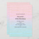 Um convite de aniversário com um legal padrão de abstrato. Gradiente de pasta, cor rosa e azul, com faixas finas de ouro.