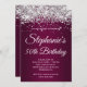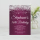 Crie o seu próprio convite para comemoração de aniversário de um marco de na moda para ela. Gráficos cintilantes brancos e prateados com defeito no topo. A arte digital de fundo apresenta um gradiente de vinho roxo vermelho. Personalize as cores ou estilos da fonte do convite. Os brilhos, brilhos e brilhos do luxo serão criados por elementos artísticos que impressão gostam de uma foto. Fabuloso convite de 50 anos para a festa de aniversário do seu melhor amigo. Cor de vinho avermelhado púrpura.