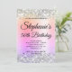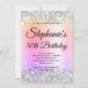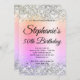 Crie seu próprio convite para comemoração de aniversário de na moda milestone para seu rico. Gráficos cintilantes prateados decorativos formam uma borda superior e inferior. A arte digital de fundo apresenta um gradiente brilhante amarelo, coral, laranja, rosa, roxo, lilás e azul pastel arco-íris. Personalize as cores ou estilos da fonte do convite. Os brilhos, brilhos e brilhos do luxo serão criados por elementos artísticos que impressão gostam de uma foto. Fabuloso convite de 50 anos para seu melhor amigo. Verifique as outras opções de filtro para a imagem de fundo.