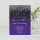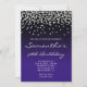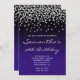 Design personalizável para convidar as meninas para sua celebração de aniversário de 30 anos ou evento especial. Confetti luminoso prateado pálido, preto, contra gradiente preto e índigo (mude a cor de fundo púrpura para personalizar). O convite de aniversário feminino apresenta um estilo moderno e elegante de letra de caligrafia. Você pode personalizar o rosto da fonte.