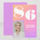 Convites de Aniversário de 86 anos Gradiente Retro Rosa para ela com Foto