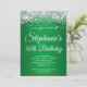 Crie o seu próprio convite para comemoração de aniversário de um marco de na moda para ela. Gráficos cintilantes brancos e prateados com defeito no topo. A arte digital de fundo apresenta um festivo gradiente verde Kelly. Personalize as cores ou estilos da fonte do convite. Os brilhos, brilhos e brilhos do luxo serão criados por elementos artísticos que impressão gostam de uma foto. Fabuloso convite de 50 anos para seu melhor amigo.