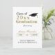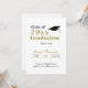 Simples convites para graduação elegantes em cartões brancos com um design de boné de morteiro. O texto é mínimo e espaçoso, dando uma aparência limpa e fácil de personalizar. Mas se precisar de ajuda, entre em contato com ArtByLiz@gmx.om e ela será personalizada para você sem custos adicionais.