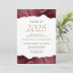 Este convite de festa de formatura de tendência apresenta uma borda superior e inferior de geode de agata de aquarela em tons de burgundy com realces falsos de brilho dourado. Personalize o convite com o ano da classe e o nome do formando em texto dourado, e os detalhes da parte em cinzas de carvão em fundo branco. Substitua facilmente a imagem de amostra na parte traseira por uma foto vertical do formando.
