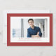 Este anúncio de graduação simples e sofisticado apresenta uma foto horizontal na frente cercada por uma armação vermelha escarlate com efeito de tuitagem de herringbone. O aspecto do tecido (note que não é tecido real) dá a este design - que também dobra como convite para a graduação - um estilo acadêmico clássico e o tipo simples é o toque personalizado perfeito. A parte traseira da placa é um padrão vermelho correspondente com espaço para um segundo texto de foto e convite de festa de formatura. O texto e a foto também podem ser deixados em vazio. Esta placa de formando original de Lea Delaveris Design também está disponível como um anúncio de graduação digital e como download de convite e pode ser encontrada em uma variedade de cores na coleção de formando de ajuste de cores herringbone. A coordenação dos fornecimentos de graduação também está disponível!