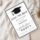 Graduação Clássica Preta e Branca Salve o script de formando de Convite para a formatura de fotos em casa aberta. Adicione suas fotos favoritas com uma elegante caligrafia de script e colagem de grade de fotos.