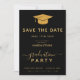 Convites Graduação Clássica Preta e Dourada Salvar a Data