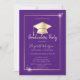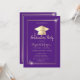 Dourado boné de formatura e estrutura dourada sobre fundo violeta.