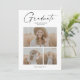 Convite para Graduação de Colagem de Fotos do Formando de Script Elegante. O verso inclui detalhes adicionais. Clique no botão editar para personalizar este design com suas fotos e texto.