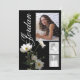 Bonito convite para formatura de Anêmona branca com texto personalizável e espaço para três fotos.
