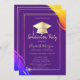 Dourado boné de formatura e violeta, quadro amarelo sobre fundo violeta.