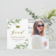 Convide convidados para a sua festa de formatura com este convite de formatura personalizável. Apresenta flores brancas de aquarela e verde. Personalize este convite para a graduação de fotos adicionando uma foto e seus detalhes. Este convite à graduação verde é perfeito para qualquer tema de evento.