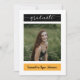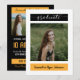 Anuncie seu novo formando em estilo ousado com este cartão moderno. O estilo de carta de nota plana tem espaços para três fotos para lhe dar uma grande oportunidade de usar suas fotos de mais velho favoritas. Inclui espaço para informações sobre cerimônias e honras. Design disponível em várias cores escolares, incluindo vermelho, laranja, amarelo, verde, azul, roxo, marrom, laranja queimado, preto e ouro. Com cinzas ou preto como trabalhava melhor. Você pode personalizar as cores e escolher o que melhor funciona para você na ferramenta design.