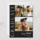Este moderno e elegante convite para a graduação da colagem de fotos em na moda apresenta 3 fotos e manchetes com o nome e texto personalizáveis do script na frente. O verso tem fotos e convites adicionais com detalhes da festa. Uma forma excelente de mostrar seu formando. Clique no botão editar para personalizar este design.