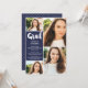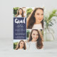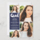 O script de Formando azul moderno do marinho 4 mostra o anúncio de graduação de fotos, com o padrão de pontos geométricos no verso, todas as cores são editáveis.