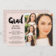 Script de Formando rosa preto e pastel preto moderno e branco 4 fotos, anúncio de graduação com colagem no estilo da cabine de fotos, com padrão de pontos geométricos no verso, todas as cores são editáveis.