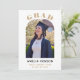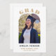 Convite para Graduação de Arco Fotográfico Elegante para Formando Chic. Design moderno e simples com o nome do formando e uma foto em um quadro de arco na frente. Personalize o convite na frente e no verso.