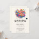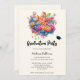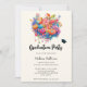 Convite para graduação com uma coleção colorida de flores de primavera e verão. Cor de laranja rosa e azul dominam o esquema de cores. Um arranjo floral brilhante e ousado exude felicidade. :)