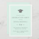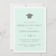 Um convite simples e moderno à festa de formatura, que inclui uma cinza e um boné de formatura branco numa estrutura retangular verde de casa de massa com uma estrutura branca interna. Os detalhes da parte estão na fonte da cinza. O reverso está em verde-menta. Clique em 'personalizar mais' para editar as cores.