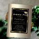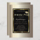 Dourado boné de formatura brilhante e moldura dourada sobre fundo de champanhe. Este convite é facilmente personalizado para o seu evento simplesmente adicionando os seus detalhes.