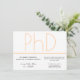 Um convite para uma festa de formatura de doutorado virtual. Este convite minimalista é branco, creme, cinza. Ele inclui espaço para fornecer o link da Web ou outras informações de conexão e uma área para seu endereço para o recebimento de cartões ou presentes. Todas as palavras e cores podem ser personalizadas.