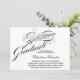 © Designs socialitas. Nossa bela escritura decorativa / caligrafia enche o design e o texto do formando, com texto preto sobre fundo branco, adiciona um toque de simples elegância a este convite de formatura. Substitua facilmente nosso texto de modelo para o seu evento especial. O verso do convite tem belos ornamentos e o texto "Classe de 20XX" para o ano de graduação. Se você precisar de ajuda para personalizar este convite, ou quiser uma mudança de cor, por favor, não hesite em entrar em contato com Designs socialitas.