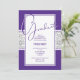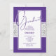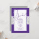 Banda de Damask em cinzas e branco bordado em roxo nesses convites de festa de formatura. VEJA TODA A COLEÇÃO de cores pré-feitas em nossa loja. **TIP: Altere a cor de fundo, clique em personalizar outro link, digite seu código hexadecimal de cor na caixa #xxxxx para corresponder às cores da escola.