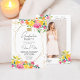 Comemore o formando em estilo com este convite para a graduação floral pintado à mão, com um espantoso design de dois lados. A frente mostra um elegante fundo branco adornada com um arranjo vibrante de flor silvestre a aquarela em tons cor-de-rosa, amarelo e laranja, combinado com um quadro geométrico de ouro moderno e delicados sotaques de brilho dourado. A tipografia da na moda destaca o nome do formando, os detalhes da festa e as informações de RSVP com um toque de sofisticação. A parte de trás apresenta uma foto de graduação de quadro de cheio, personalizada com o nome do formando em uma fonte chic script, mantendo o foco na estrela da celebração. Este convite artístico e moderno ao feto combina elegância floral com um layout contemporâneo, fazer-o um anúncio digno de guardiã para esta ocasião especial.