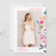 Boêmia cor-de-água rosa flores festa de formatura convite. Apresentando delicadas flores de aquarela e detalhes românticos em rosa, vermelho, laranja, eucalipto verde e indigo azul e um roteiro elegante de pincel. Adicione sua foto atrás.