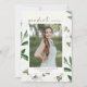 Convide convidados para a sua festa de formatura com este convite de formatura personalizável. Apresenta flores brancas de aquarela e verde. Personalize este convite para a graduação de fotos adicionando uma foto e seus detalhes. Esse convite de formatura botânica é perfeito para qualquer tema de evento.