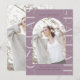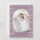 Este anúncio moderno de dois cursos de graduação de fotos apresenta um belo fundo roxo de ameixa e uma grande tipografia com um arco de fotos geométricas frontal, e uma foto de cheio na parte de trás do cartão.