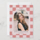 Nosso Convite para Graduação Retrospectiva Cheque apresenta um quadro de fotos de arco, fundo controlado e tipografia moderna. Personalize esse convite de formatura minimalista adicionando sua foto, seu nome, escola e outros detalhes. Este convite de graduação está disponível em outras cores. Fotos de prostooleh / Freepik.