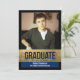 Fundo azul-escuro real, quadro preto de cor superior com efeito de folha de ouro e recorte "Formando" perfeitamente personalizado com o nome do formando, a escola e a fotografia. A imagem impressa em folha de ouro é sofisticada e elegante por celebrar a grande conquista do formando masculino ou de qualquer um!