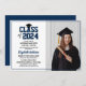 Convites Graduação de Foto com Formando Azul Simples Elegan
