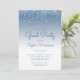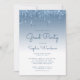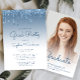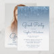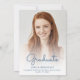 Convite moderno de graduação com uma borda azul de brilho falso em um fundo ombre. As palavras "Partido Formando" e o nome da honraria aparecem em um script de escrita manual azul, com o texto restante na fonte sans serif. O verso exibe uma foto vertical personalizada, com a palavra "Formando" na sobreposição de script de escrita manual azul, e o nome do formando, escola e ano de graduação abaixo na fonte sans serif. Substitua facilmente a imagem de amostra pela foto do seu próprio formando. Uma tela de gradiente branco ajuda a garantir os pop de texto.