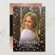 Cartões de Convite para Graduação de Fotos Confetti e rosa Dourado. Saúde ao formando! Este anúncio celebra tudo com toda a sensatez! Cartão de saudação de sobreposição de fotos com o padrão impresso rosa gold em formato impresso, em volta da borda do quadro da foto. Sombreamento adicionado automaticamente para um novo cartão de anúncio de Formando de foto ou convite de participante completo.