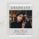Anuncie seu formando em estilo com este impressionante cartão de anúncio/convite de festas de graduação de fotos que apresenta um elegante design de dois lados com duas fotos mais velho do seu lindo formando. O esquema neutro de cor preto, branco e platina pode ser modificado. O verso das cartas inclui um convite a uma festa de formatura para celebrar a ocasião.