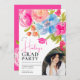 Uma bonito mão original bóvica pintou uma festa de graduação floral com flores bonito e flores com folhagem verde, cor-de-rosa-branco, azul, rosa-branco-boêmio 2024, com flores e flores com folhagem verde. Uma festa bonito do jardim ao ar livre para celebrar o formando!