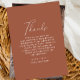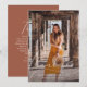 O cartões de agradecimentos de graduação elegante e moderno apresenta uma foto de cheio com um belo roteiro de caligrafia branca, e um obrigado pessoal que você envia na parte de trás do cartão laranja na moda terracotta.