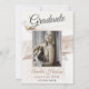 Cartão de Convite para Festa de formatura de Formando de Pilha de Livros Elegante. Design com uma pilha de livros antigos em aparência vestida com fita branca e velha. Estilo shabby com um modelo de foto e texto em um script de tendência. Personalize com sua foto e seus detalhes da festa. Você pode alterar qualquer texto no cartão ou pode excluir o texto se não precisar dele.