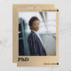 Um convite minimalista para festa de formatura de doutorado com texto preto e fundo dourado. O verso inclui os detalhes da festa de formatura e uma versão menor da foto do formando. Basta adicionar sua foto e informações, adicionar este convite ao seu carrinho e celebrar esta grande conquista. Licenciado para PhD com Foto Dourado classe de Graduação de Convite para o Feriado 2022 Design de Natal | ©Melissa Patton - Designer