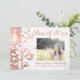 Cartões de Anúncio de Convite para Graduação de Fotografias Elegantes Douradas de rosa. Anúncio bonito de graduação de fotos com fundo branco com rico rolo e roletes brancos atordoantes. Bonito, feminino mas elegante e estilo formal.