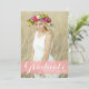 Convide familiares e amigos para o seu evento com este convite de festa de formatura de 2023, que pode ser personalizado. Apresenta a palavra "formando" na caligrafia moderna com um sotaque de abertura cor-de-água rosa. Personalize este convite para a graduação de fotos adicionando seus próprios detalhes. Este convite para a graduação de aquarela cor-de-rosa é perfeito para segundos graus e formandos.