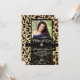 Foto personalizada e texto. fundo de impressão animal preto e rico preto e branco-dourado com padrão-leopardo-marrom preto com fita de aspecto-pardo-preto e joia-rhinestone falsa. Um cartão bonito e feminino de formando de moda para a fêmea.