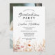 Convite para Graduação Floral de Fotos Elegante Boho - Este convite elegante para festas de formatura apresenta flores silvestres boho delicadas com caligrafia moderna e sua foto de Formando.
