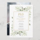 Apresentando delicadas folhas de cor d'água verde, este convite para festa de formatura de Phd chic pode ser personalizado com sua foto de formando no verso. Projetado por Thisnotme©